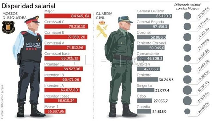 Durante años, distintas asociaciones y sindicatos de la Guardia Civil han reclamado una equiparación salarial real con respecto a otros cuerpos de seguridad. Han destacado que, si bien comparten responsabilidades y riesgos similares, sus condiciones económicas son inferiores.